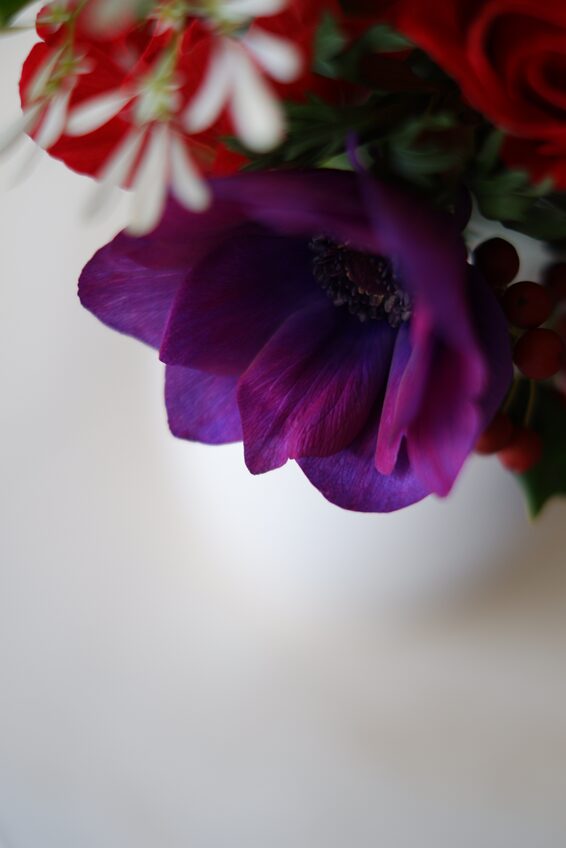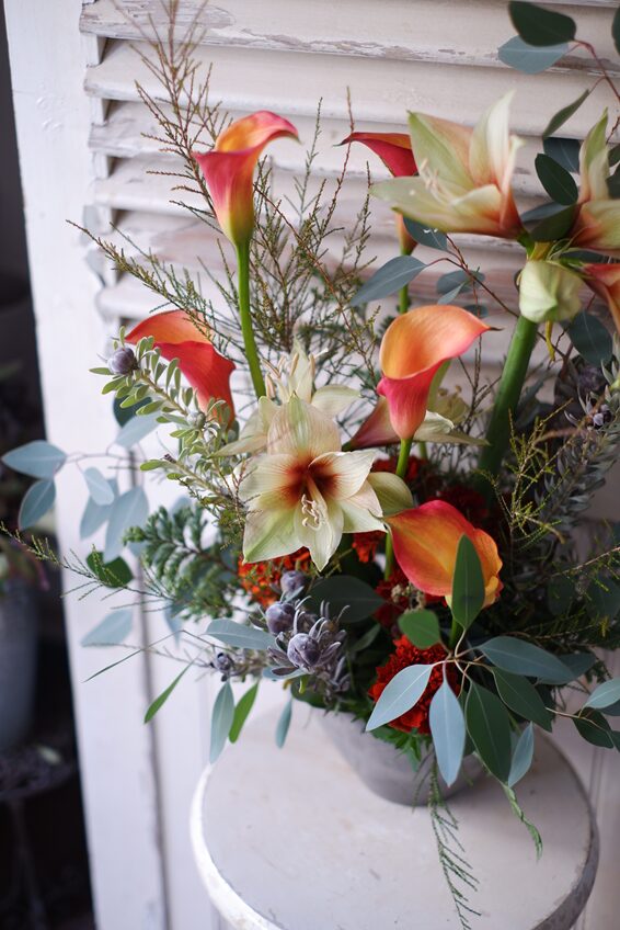 今日は、季節のアマリリスやアネモネを使った、アレンジメントと花束をご紹介します