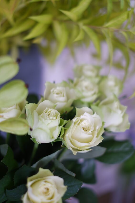 実際には、お客様ご持参の赤や銀色のハートのバルーンをたくさん添えてお届けしました