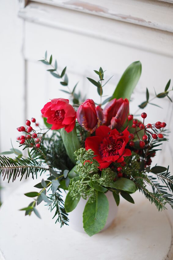 今日は、クリスマスを意識した花束やアレンジをご紹介します