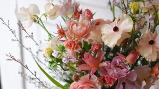 バラとコスモス Diary 2024.10.23 バラとコスモスのアレンジメント。秋の草花と言えば、やはりコスモスが思い浮かびますね。紅葉や木の実、ケイトウなどを添えて、それぞれ季節感たっぷりに仕上げました。