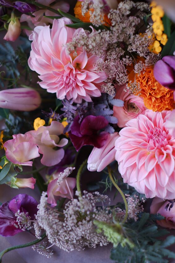 Diary今日はもうひとつ、ダリア「ピーチロゼ」を入れた花束を