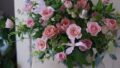 お休み前の最後にお作りしたのは、ベージュ色のバラ2種と草花のアレンジ