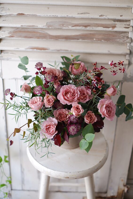 奥様のお誕生日に、毎年ご主人様からオーダーをいただくバラのアレンジメントです