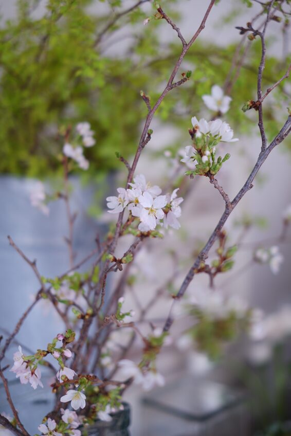 ご来店のお客様も、グリーンの枝ものや草花をお求めになる方が多く、季節の移ろいを感じますね