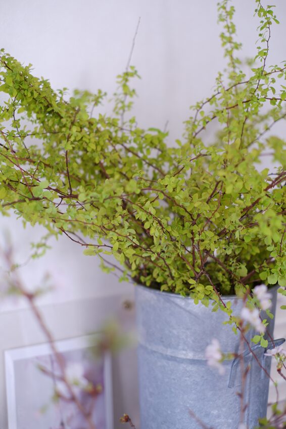 コデマリ「オーレア」や山吹、ビバーナムなどの爽やかな枝ものに、