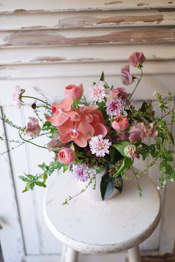 エアリーな雰囲気で、やさしい印象のアレンジメントに仕上げました