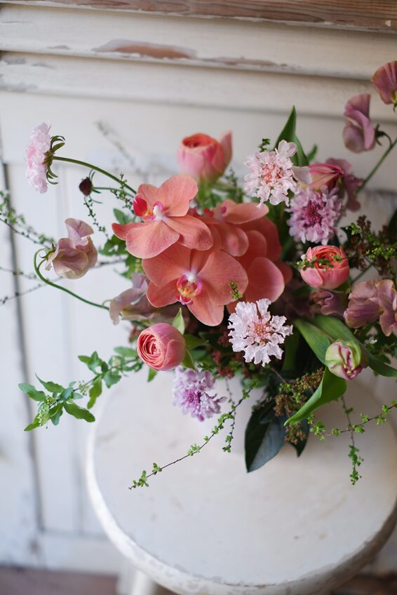 蘭と草花は、一見不釣り合いなようで、実はとても相性のよい組み合わせ