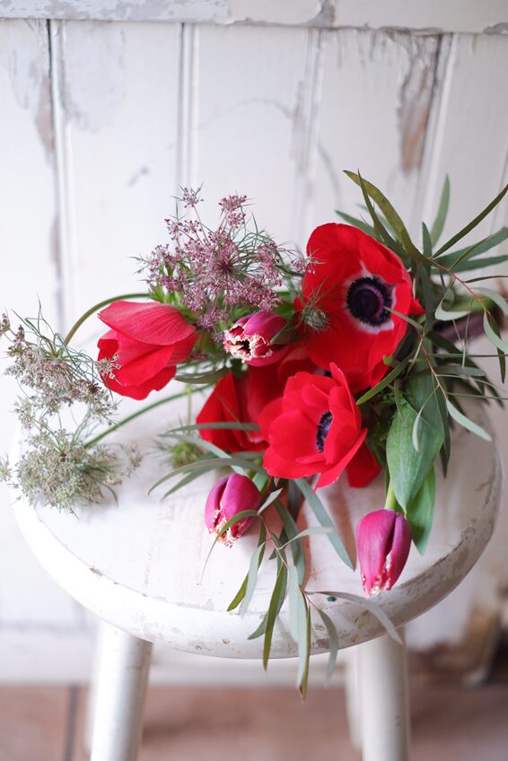 「赤い花を入れて」とのオーダーでした