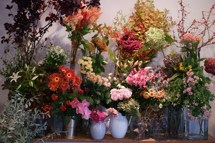 クリスマスリースのご注文も入り始めていますが、お店の花はまだまだ秋