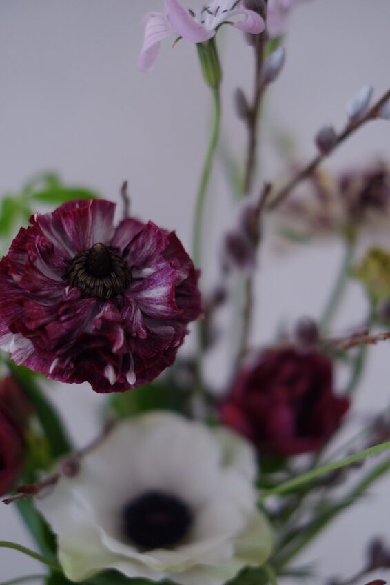 平面的に咲くラナンキュラスは、ほんの少し向きを変えるだけでも表情が変わりますね
