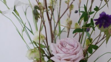 今日は、お二人の方に、バラ「シュエルバーツ」をポイントにした花束をお作りいただきましたひとつは、白花万作の枝に、アグロステマやオダマキなど初夏の草花を合わせてもうひとつは、ハーブのディルを添えて、ガー...