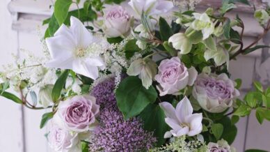 5~6月に出回る草花や枝物によく合う、ローズファームケイジさんの「葵」シリーズのバラたちそのなかから今日は、淡いピンクの「葵舞(あおいまい)」を使ってアレンジしていただきました合わせたのは、この時期だ...