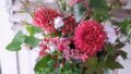 ボルドーに色づいた秋草を添えてのアレンジです