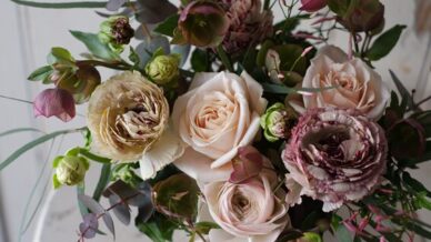 こちらは、ヨーロッパ調のアンティークな雰囲気がお好きな方へ、お誕生日のアレンジメントローズファームケイジさんのバラ「結」ラナンキュラス「ガルティエ」などにシックなピンクのクリスマスローズを添えてお作り...