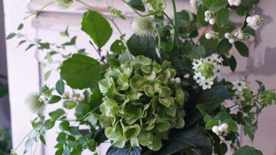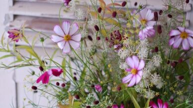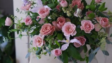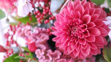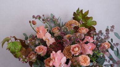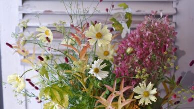 「コスモスを入れて秋らしく・・」ご友人のご退院をお祝いして、季節を感じる秋のアレンジメントを
