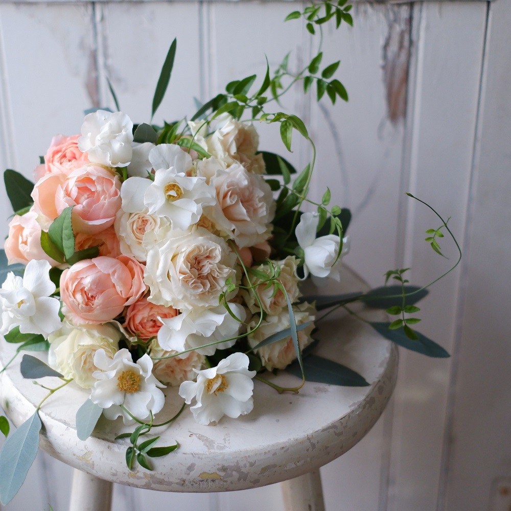 オークリーフのウェディングブーケは、花嫁様をより美しく見せるために、ベーシックナチュラルなスタイルを基本としています。
